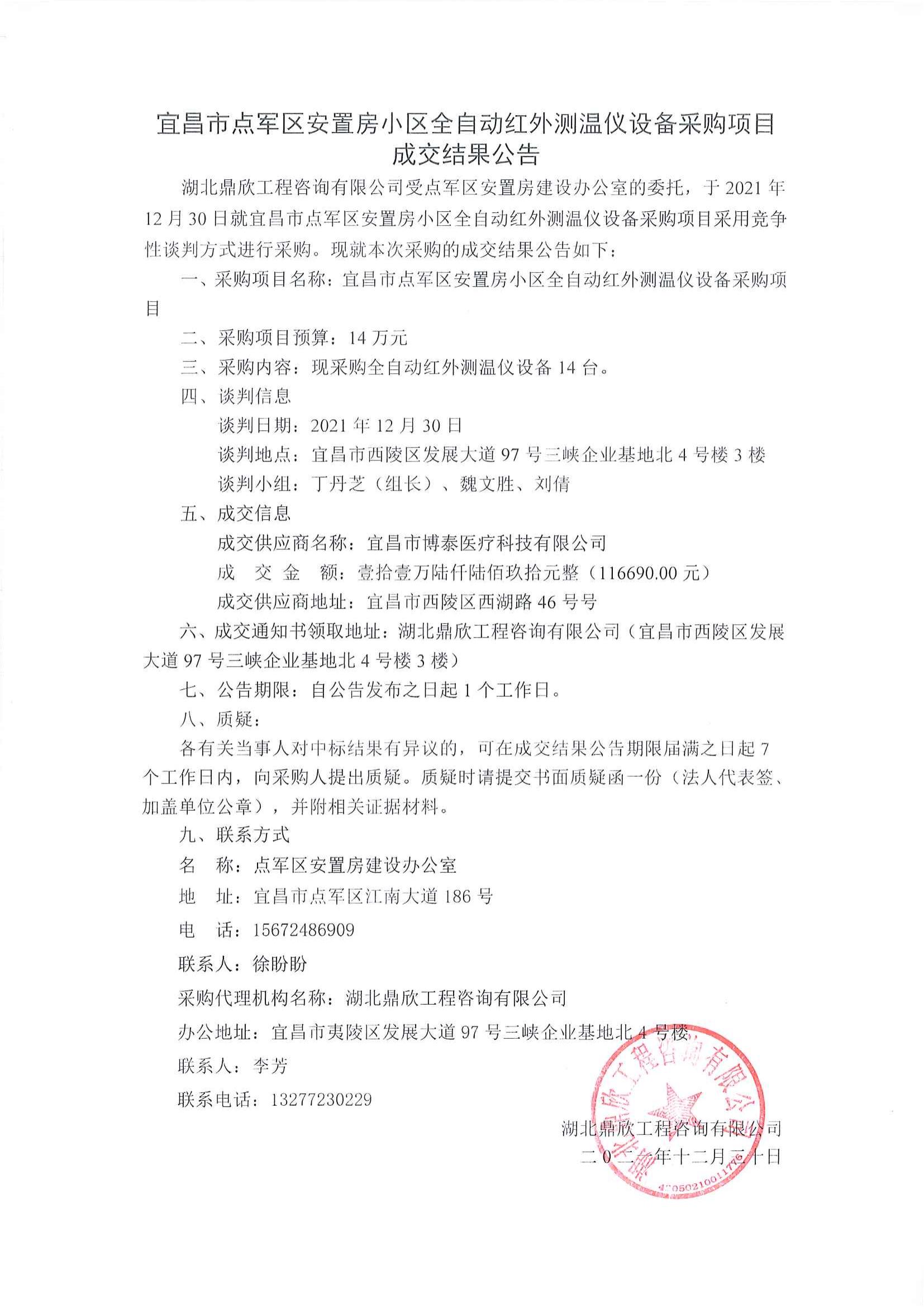 宜昌市點(diǎn)軍區(qū)安置房小區(qū)全自動(dòng)紅外測溫儀設(shè)備采購項(xiàng)目成交公告