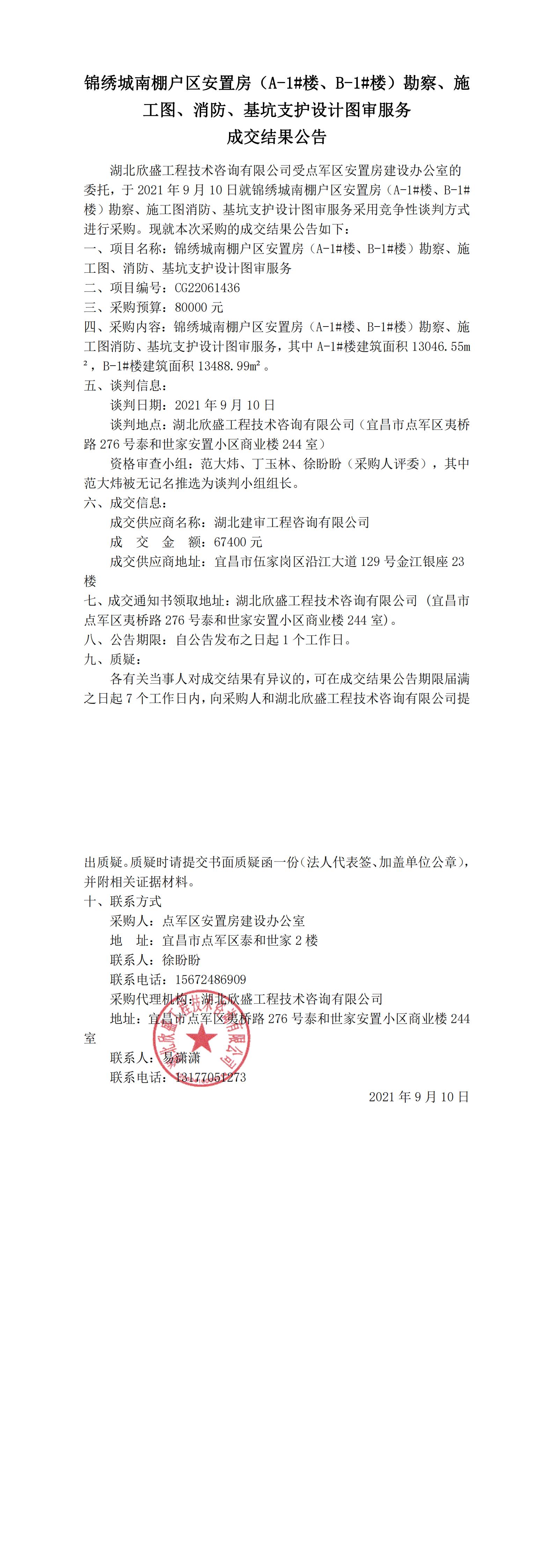 錦繡城南棚戶區(qū)安置房(A-1#樓、B-1#樓)勘察、施工圖、消防、基坑支護設計圖審服務成交結(jié)果公告