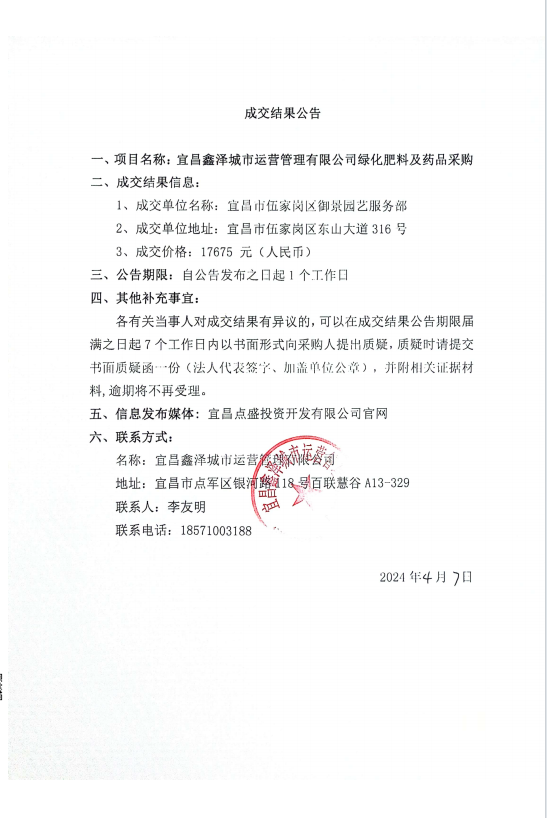 宜昌鑫澤城市運(yùn)營管理有限公司綠化肥料及藥品采購項(xiàng)目詢價(jià)公告