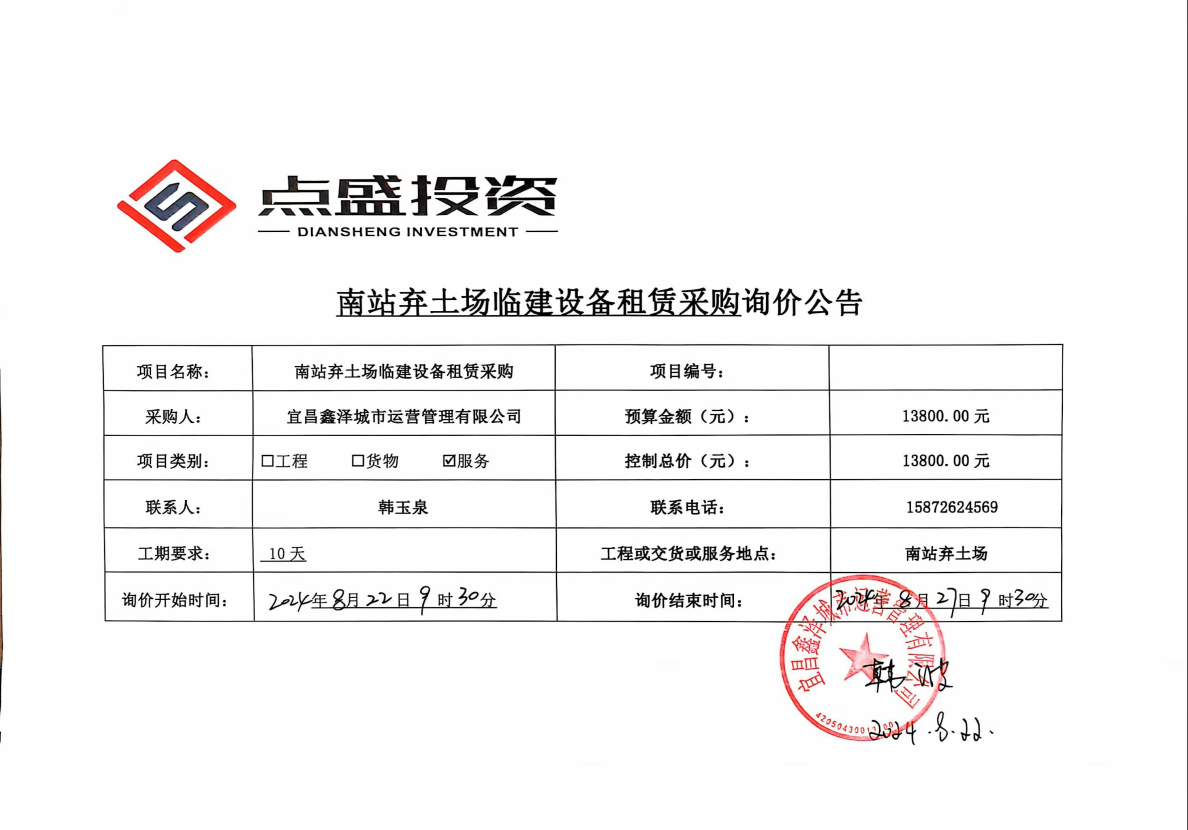 南站路棄土場(chǎng)臨建設(shè)備租賃采購項(xiàng)目詢價(jià)公告