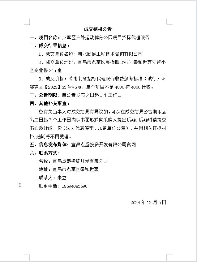 點(diǎn)軍區(qū)戶外運(yùn)動(dòng)體育公園項(xiàng)目招標(biāo)代理服務(wù)成交公告