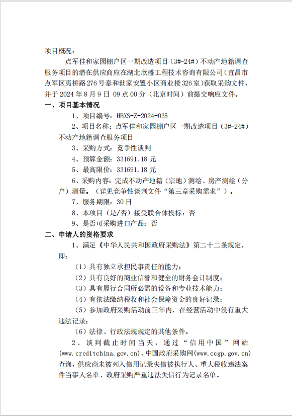 點(diǎn)軍佳和家園棚戶區(qū)一期改造項(xiàng)目(3#-24#)不動產(chǎn)地籍調(diào)查服務(wù)項(xiàng)目談判公告